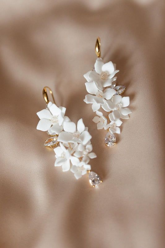Madlen - Weiße Blumen Hochzeitsohrringe