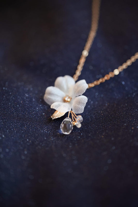 Adoria - Bezaubernde Hochzeitskette mit Seidenblumen, Brautkette, zierliche Hochzeitskette, Hochzeitsschmuck, Schmuck für Bräute