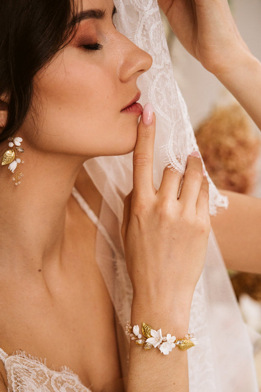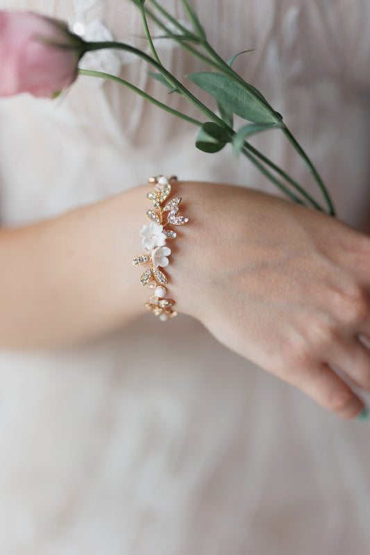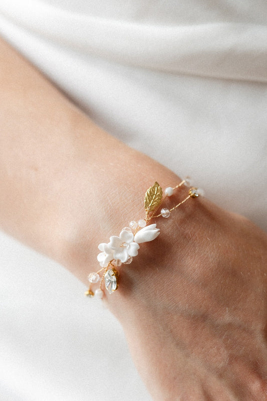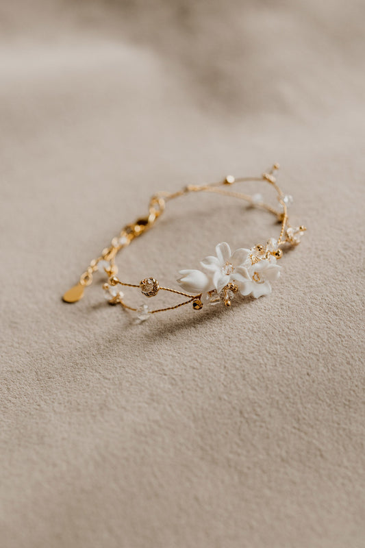 Flora – Zartes Hochzeitsarmband mit Blumen & Blättern