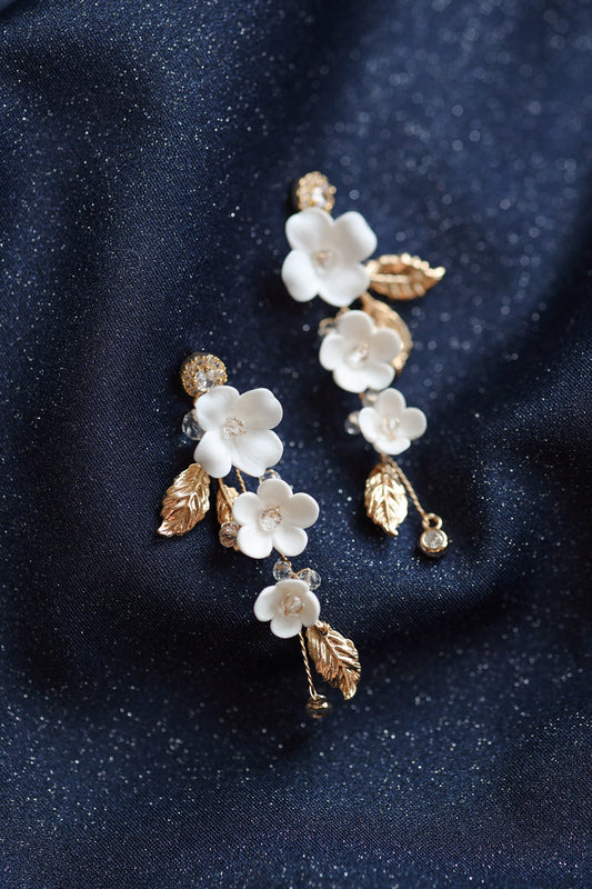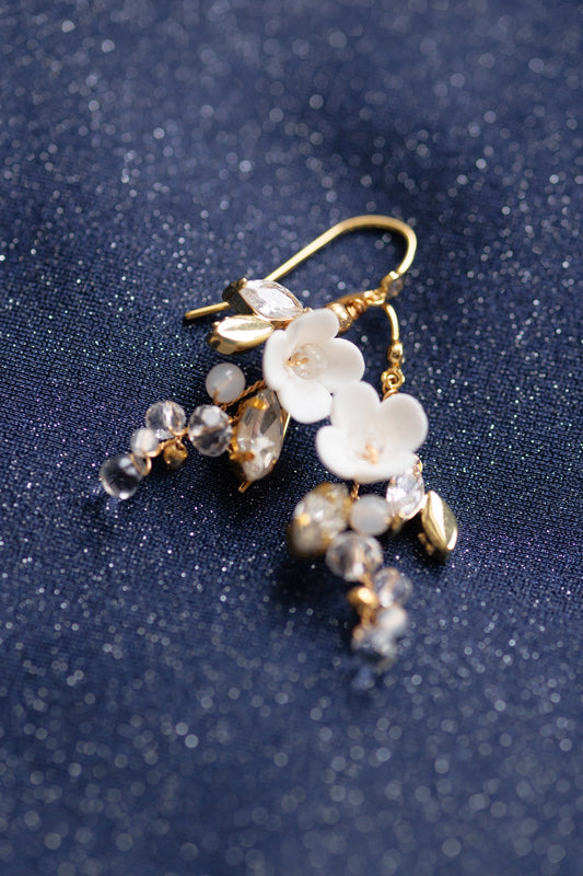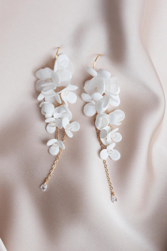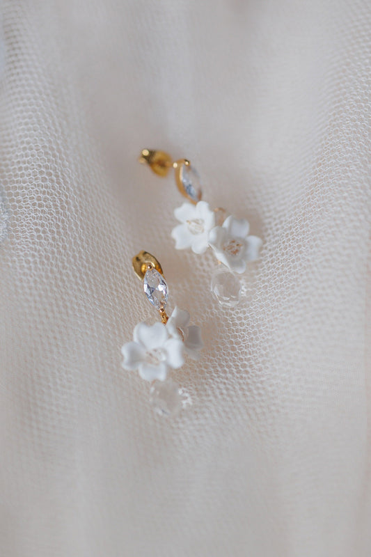 Madlen - Weiße Blumen Hochzeitsohrringe