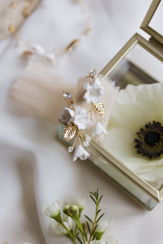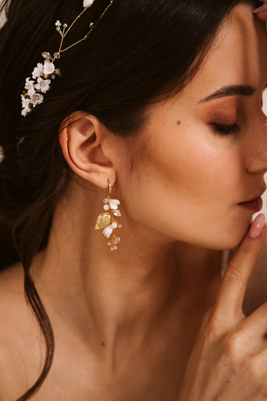 Adeline - kleiner Hochzeitsohrring mit Blättern und Blumen