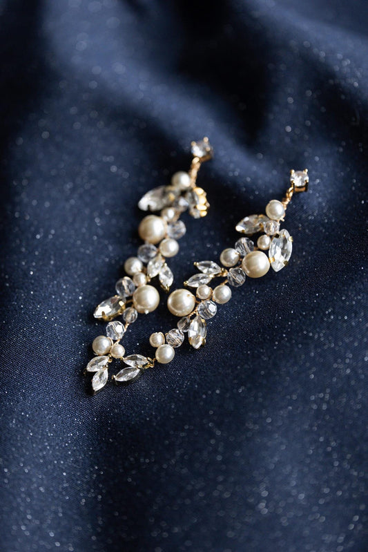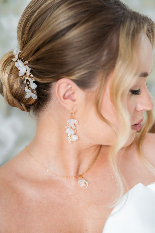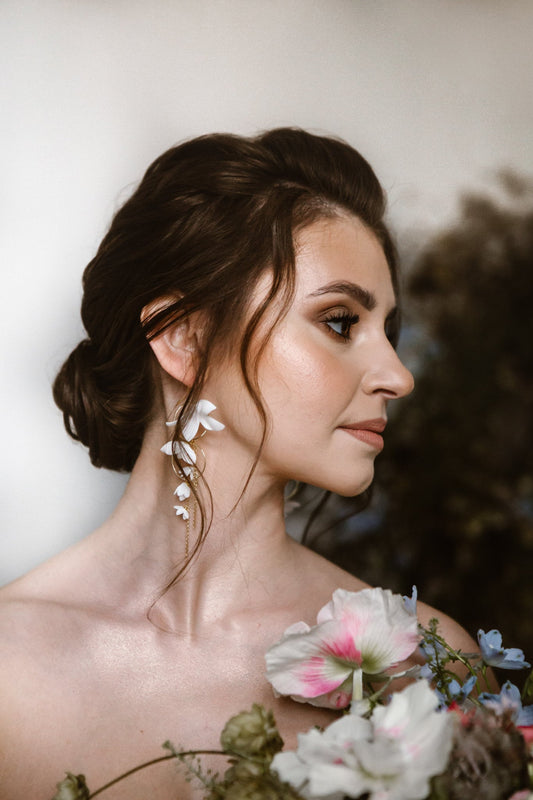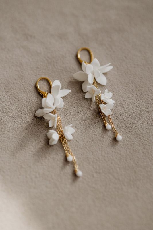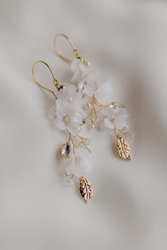 Helen Petite - Lange Hochzeitsohrringe mit Blumen