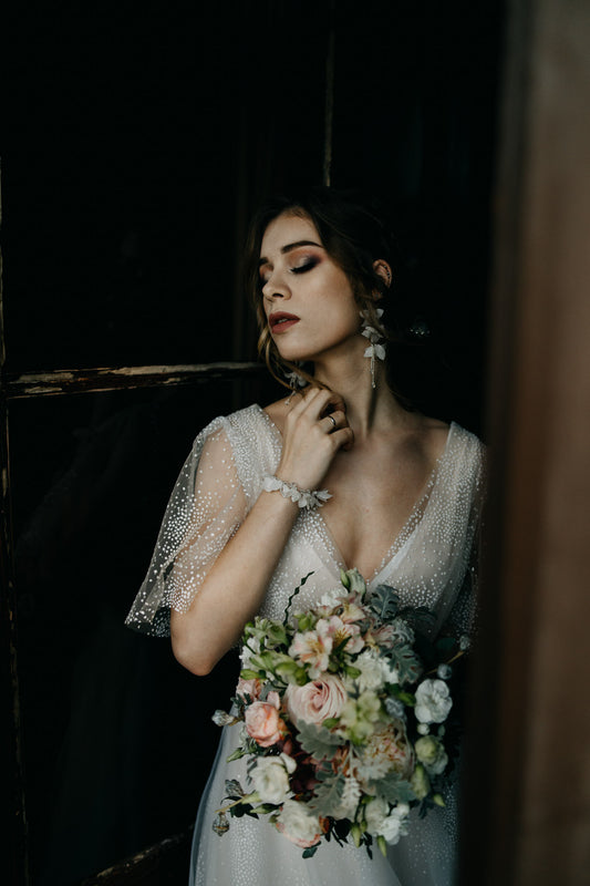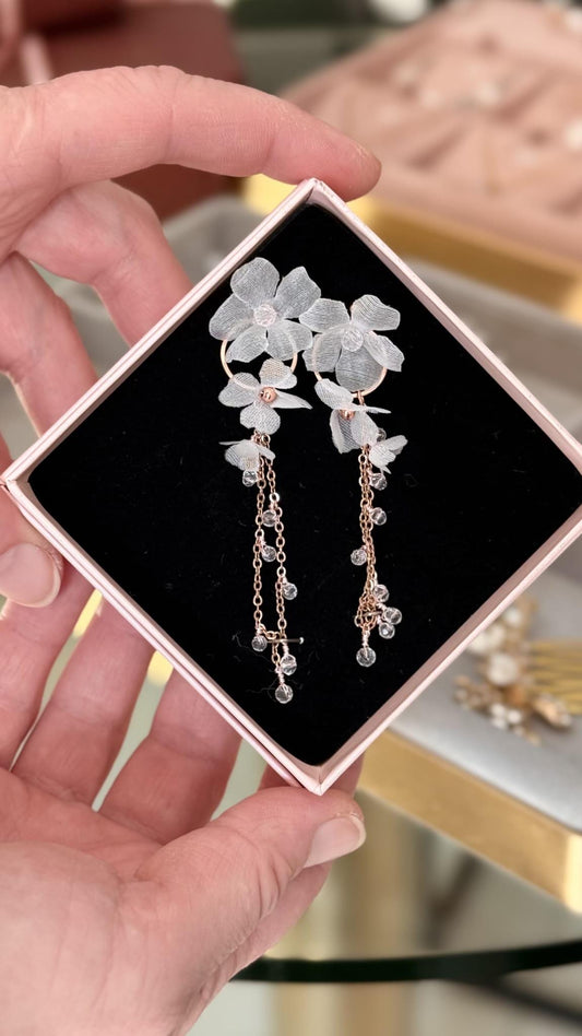Helen Mist – Hochzeitsohrringe mit Seidenblumen