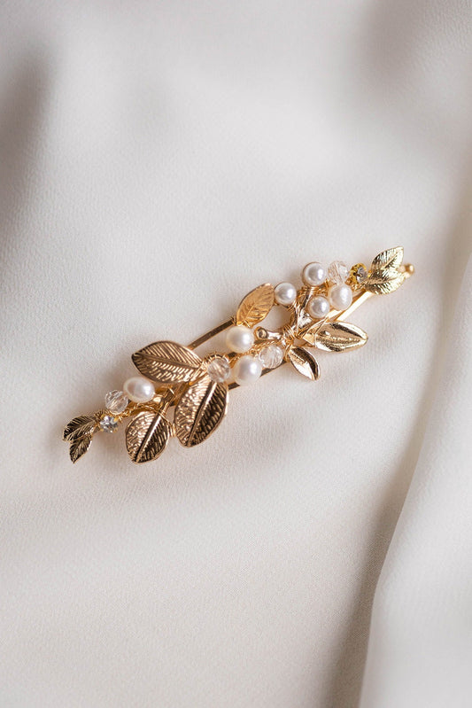Poli - Boho Braut Haarnadel Blätter & Süßwasserperlen