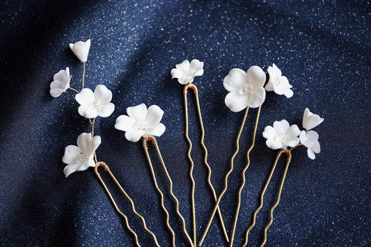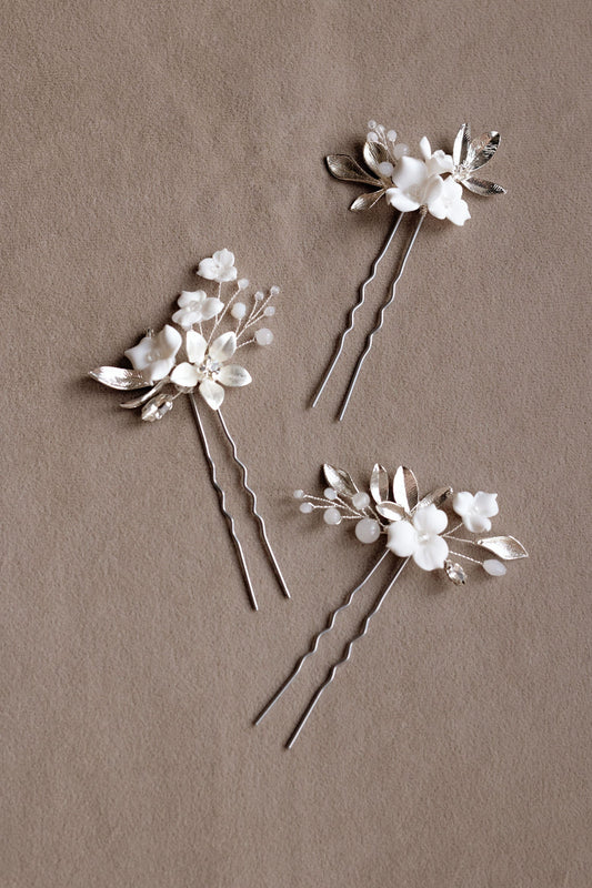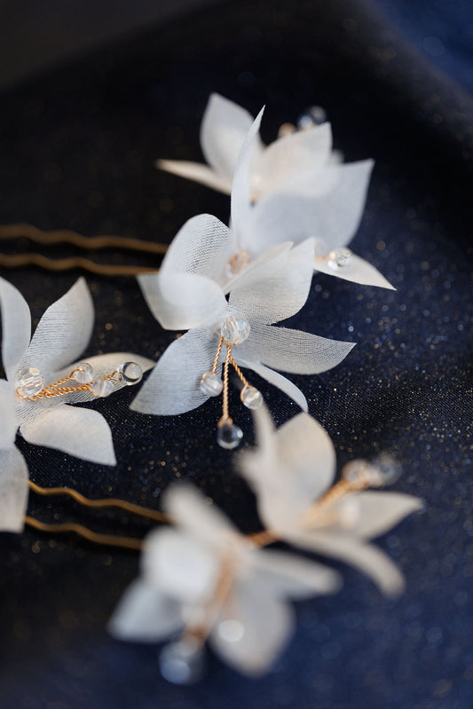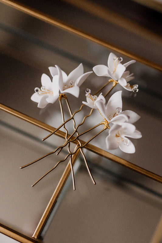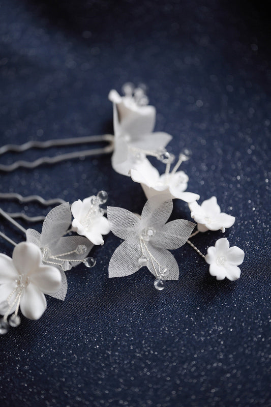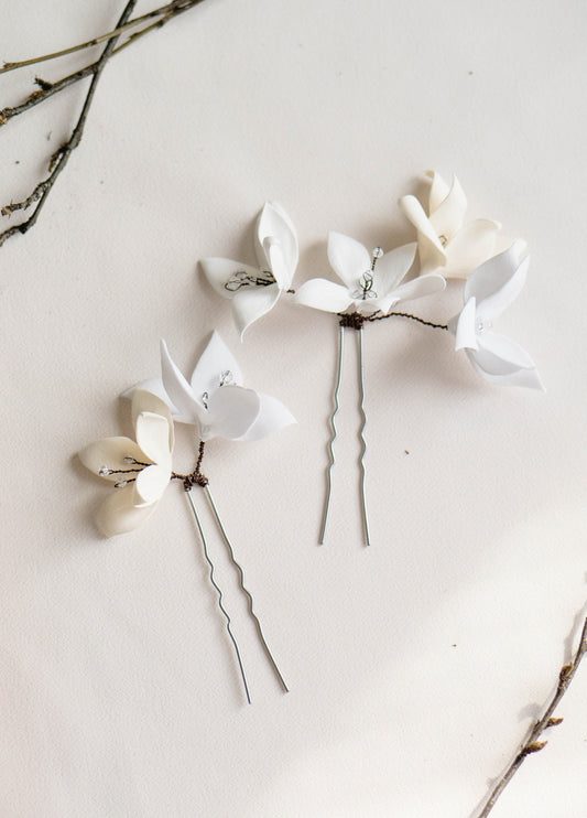 Madlen - Weiße Blumen Haarnadeln für die Hochzeit