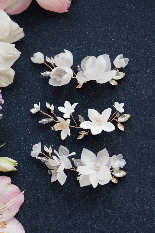 Bianca - 2 Hochzeitshaarteile mit Blumen
