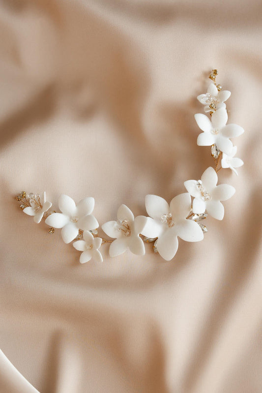 Madlen - Hochzeitshaarteil mit weißen Blumen
