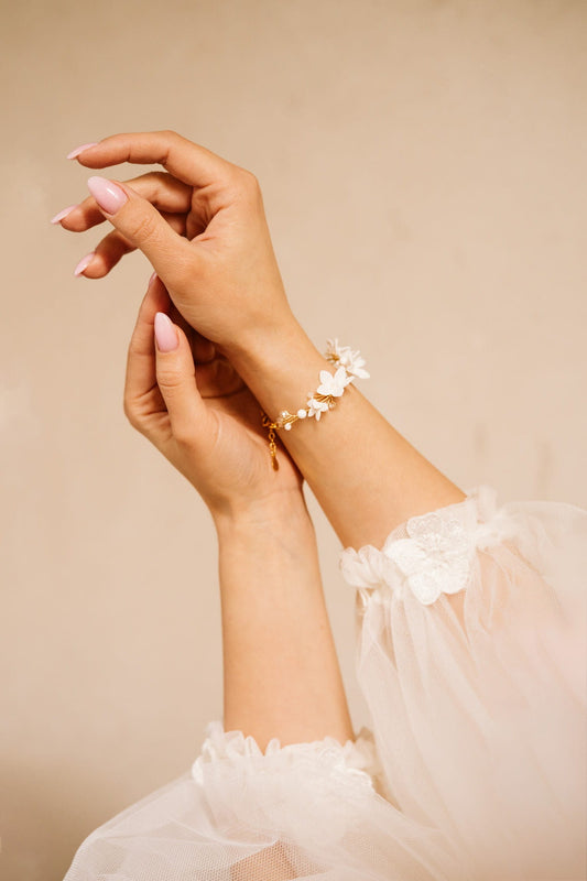 Boho Brautschmuck mit Blumen – Ohrringe, Armband & Haarspangen