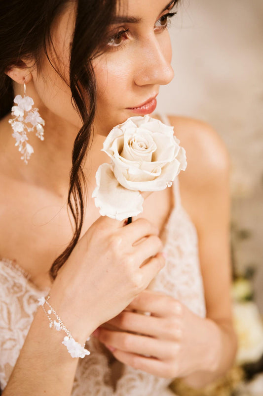 Hochzeitsschmuckset mit Blumenohrringen und Armband