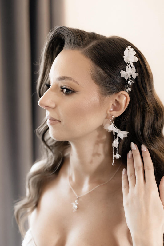 Lidia - Originelle Hochzeitsohrringe mit weißen Blumen