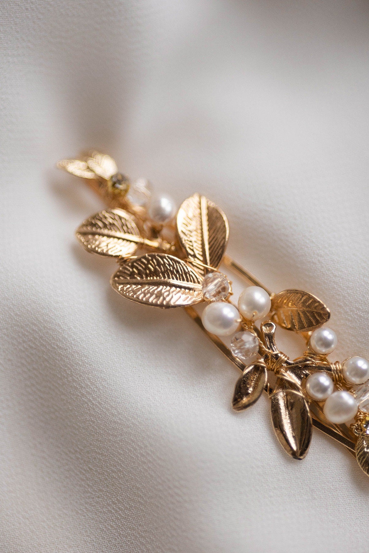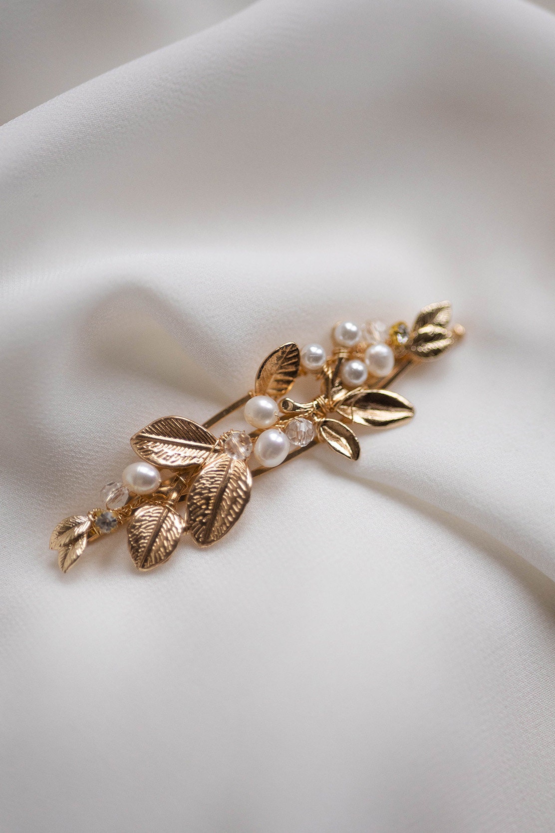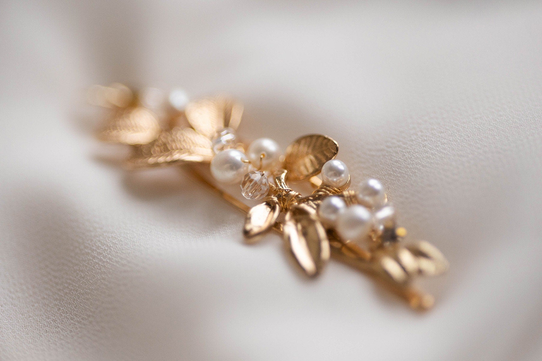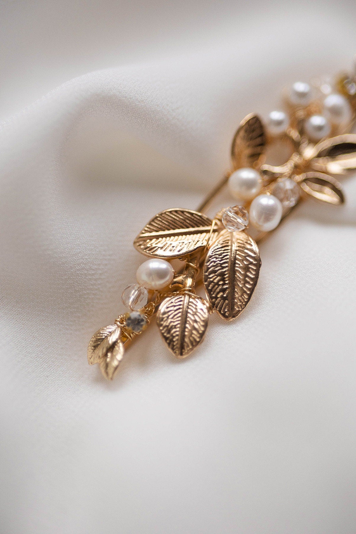 Poli - Boho Braut Haarnadel Blätter & Süßwasserperlen