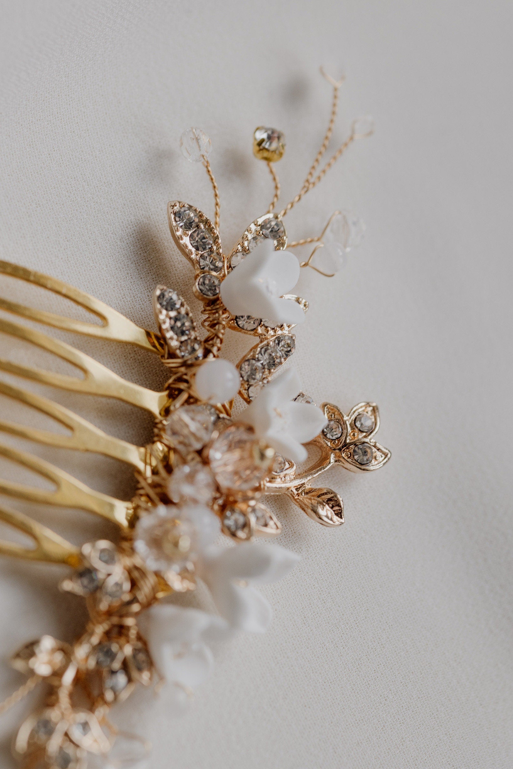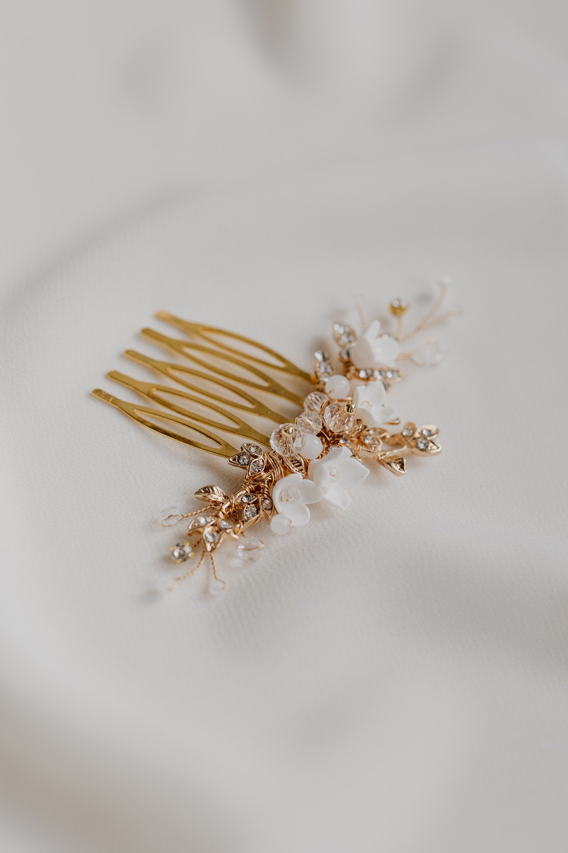 Harper - Braut-Haarkamm mit Strasssteinen und Blumen
