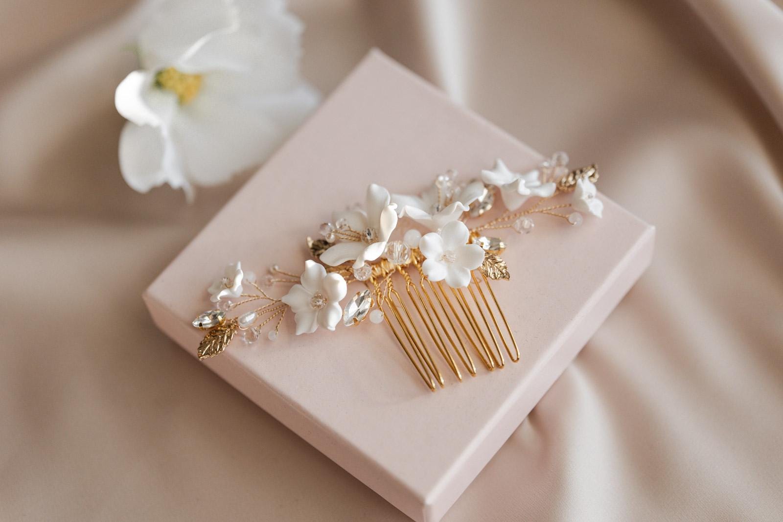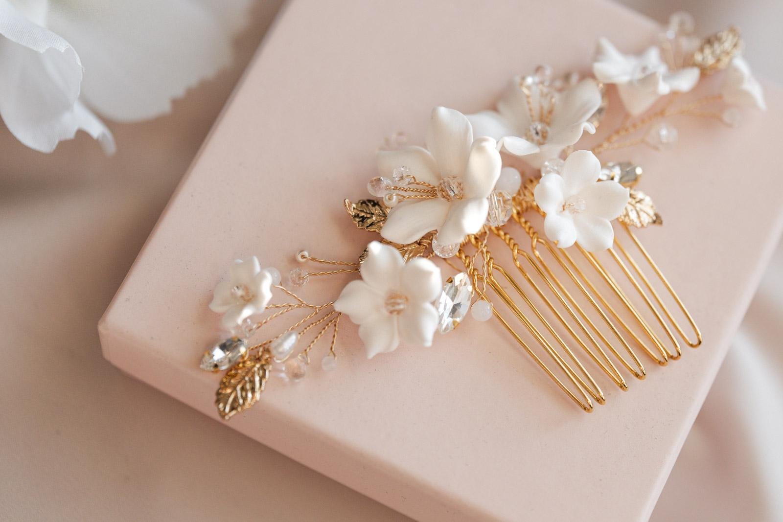 White Sofia – Braut-Haarkamm mit weißen Blumen
