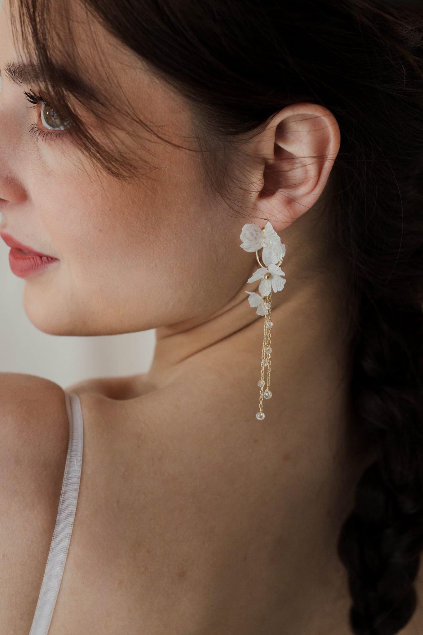 Cindy - Zarte Hochzeitsohrringe mit Seidenblumen