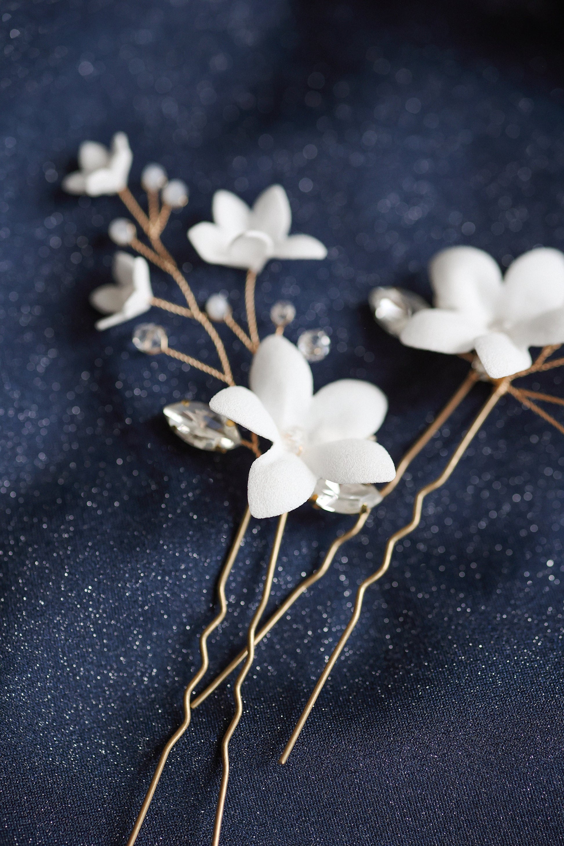 Holly - Hochzeitshaarnadeln mit weißen Blumen und Zirkonen