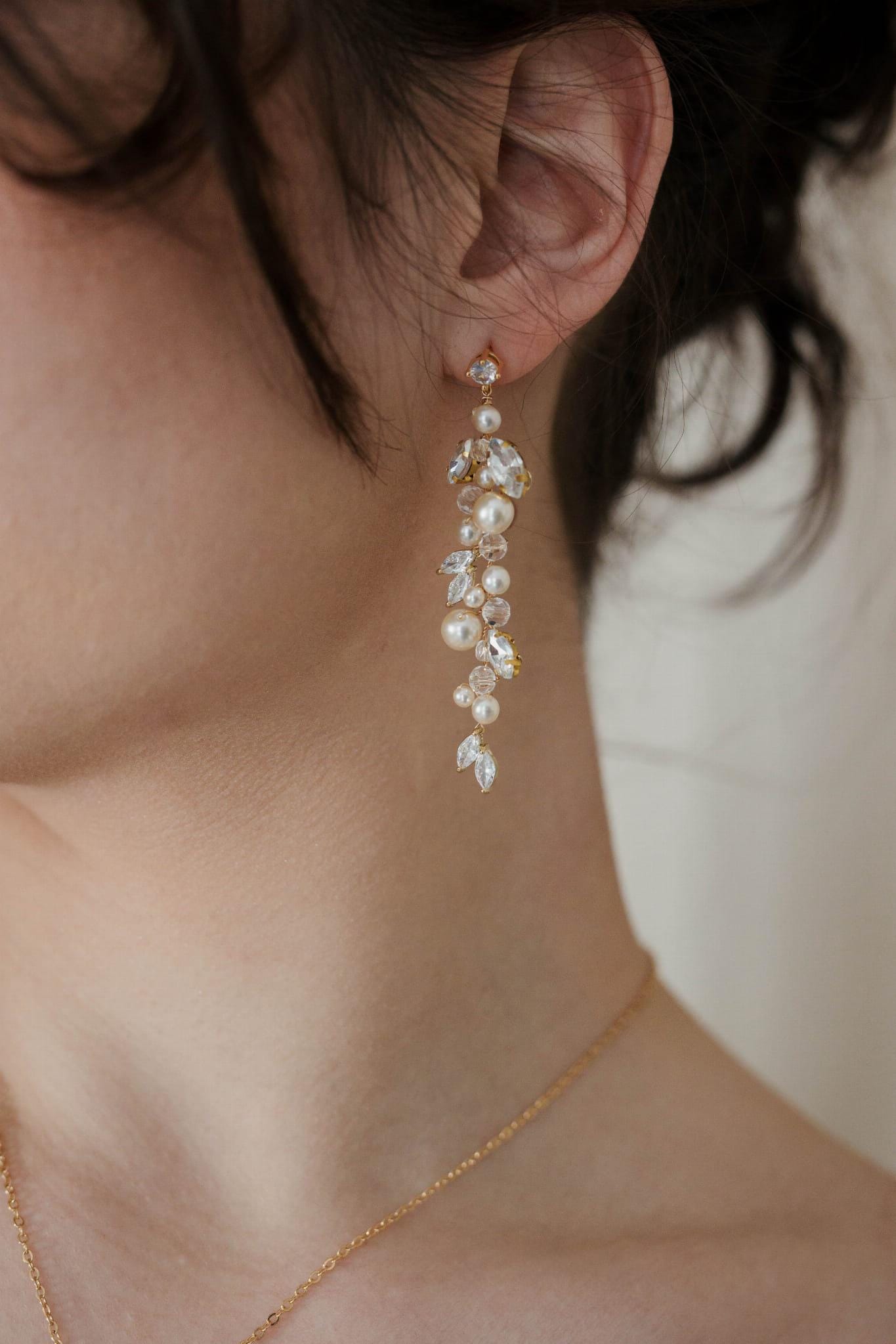Saria – Lange Perlenohrringe für die Braut