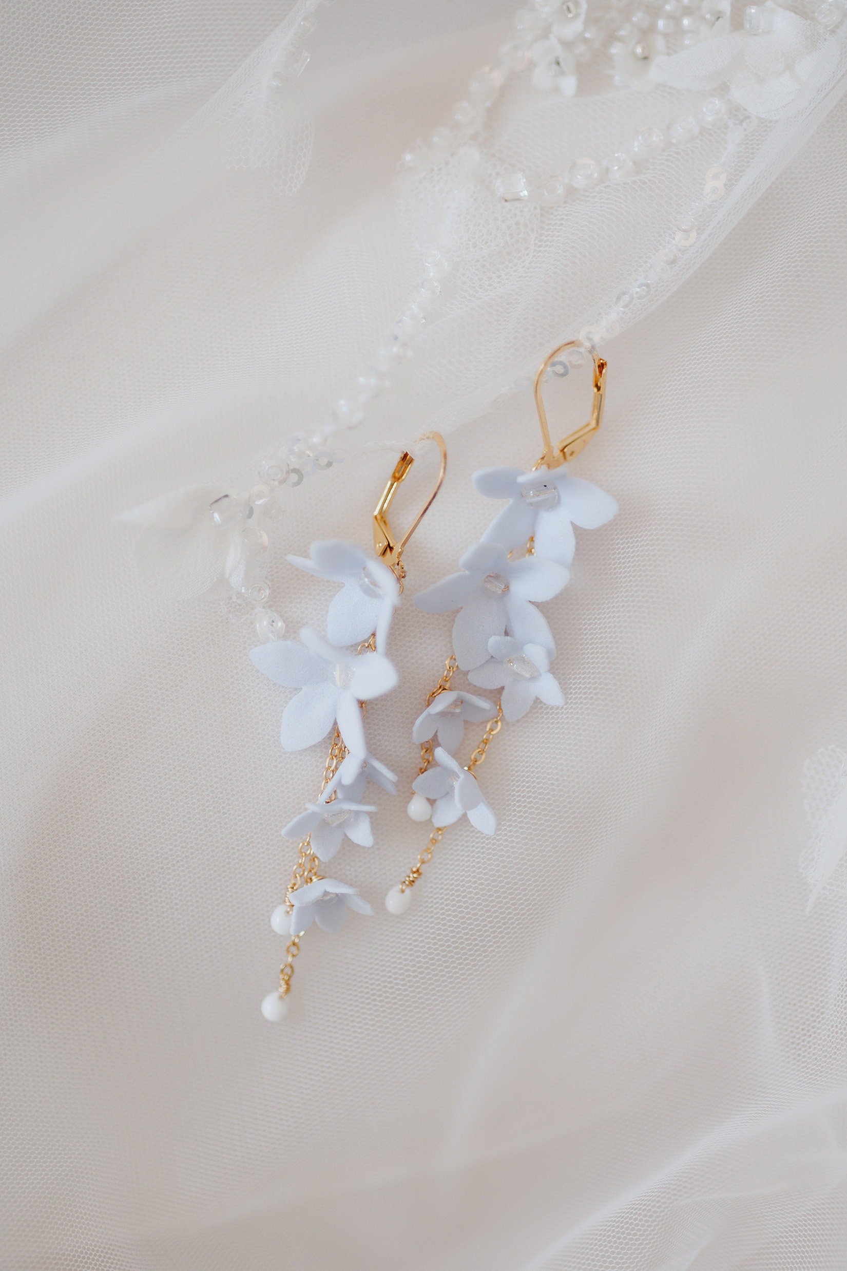 Ich habe Ohrringe mit blauen Blumen vorbereitet, um gemäß der Hochzeitstradition „etwas Blaues“ Freude zu bereiten :)