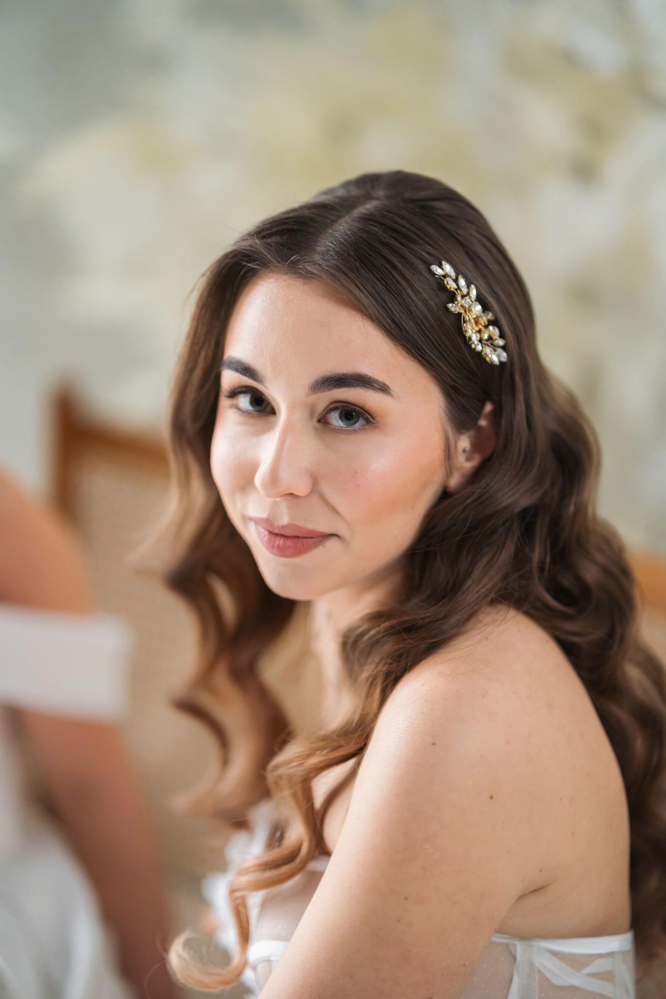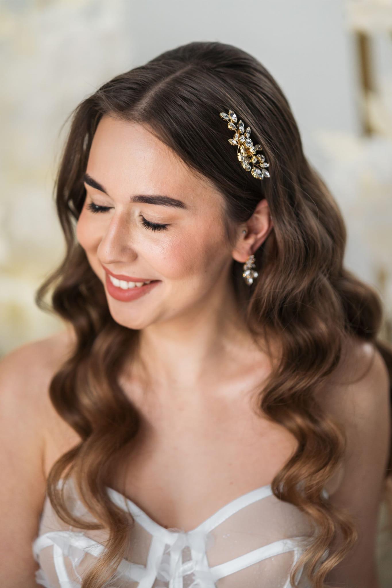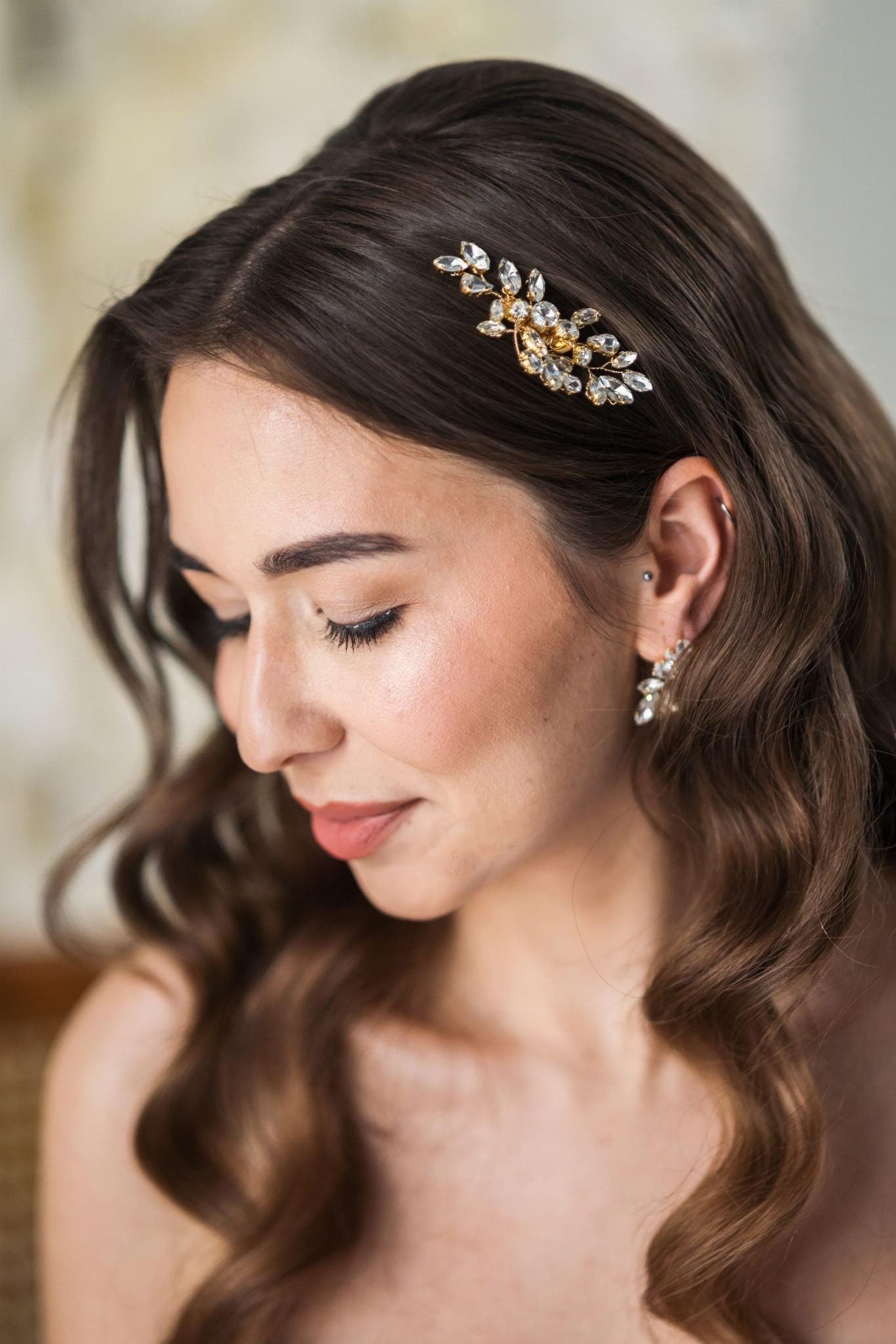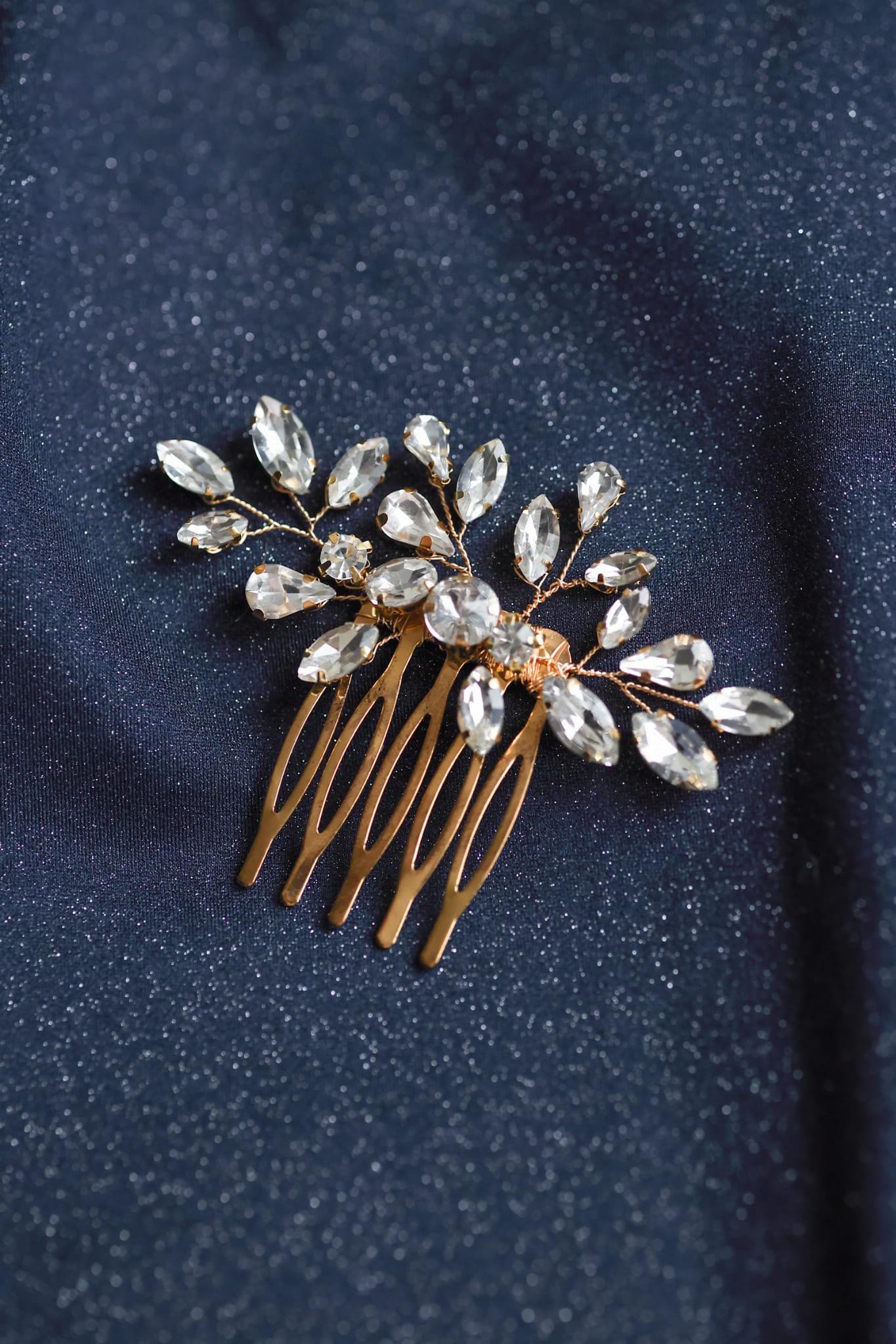 Funkelnde Kristalle ergeben einen magischen Kamm für Hochsteckfrisuren, z. B. Hollywood-Wellen oder verschiedene Dutt-Typen. Sein einzigartiger Chic und Charme verleihen romantischen Frisuren Charme und betonen den eleganten Stil klassischer Frisuren.