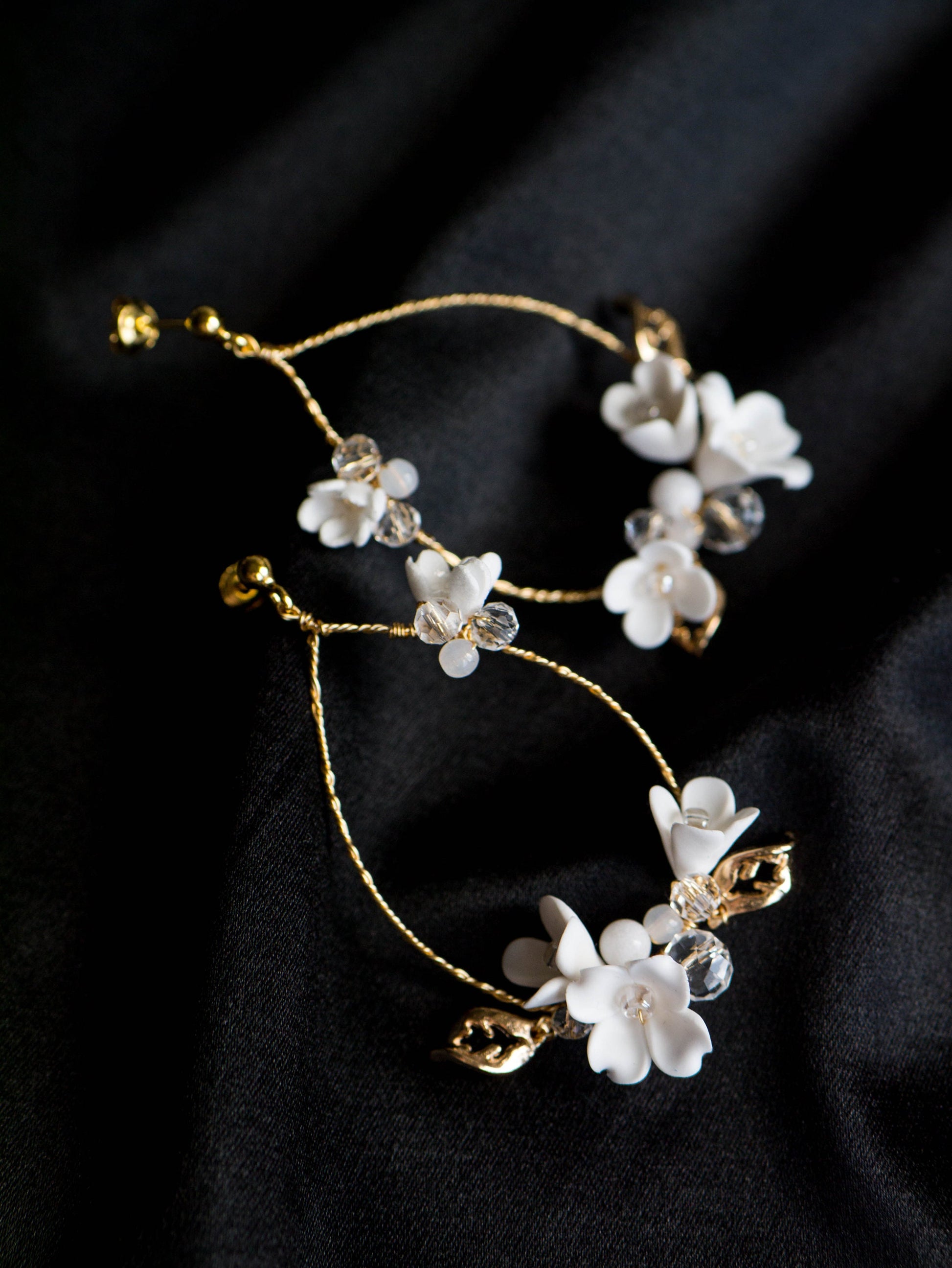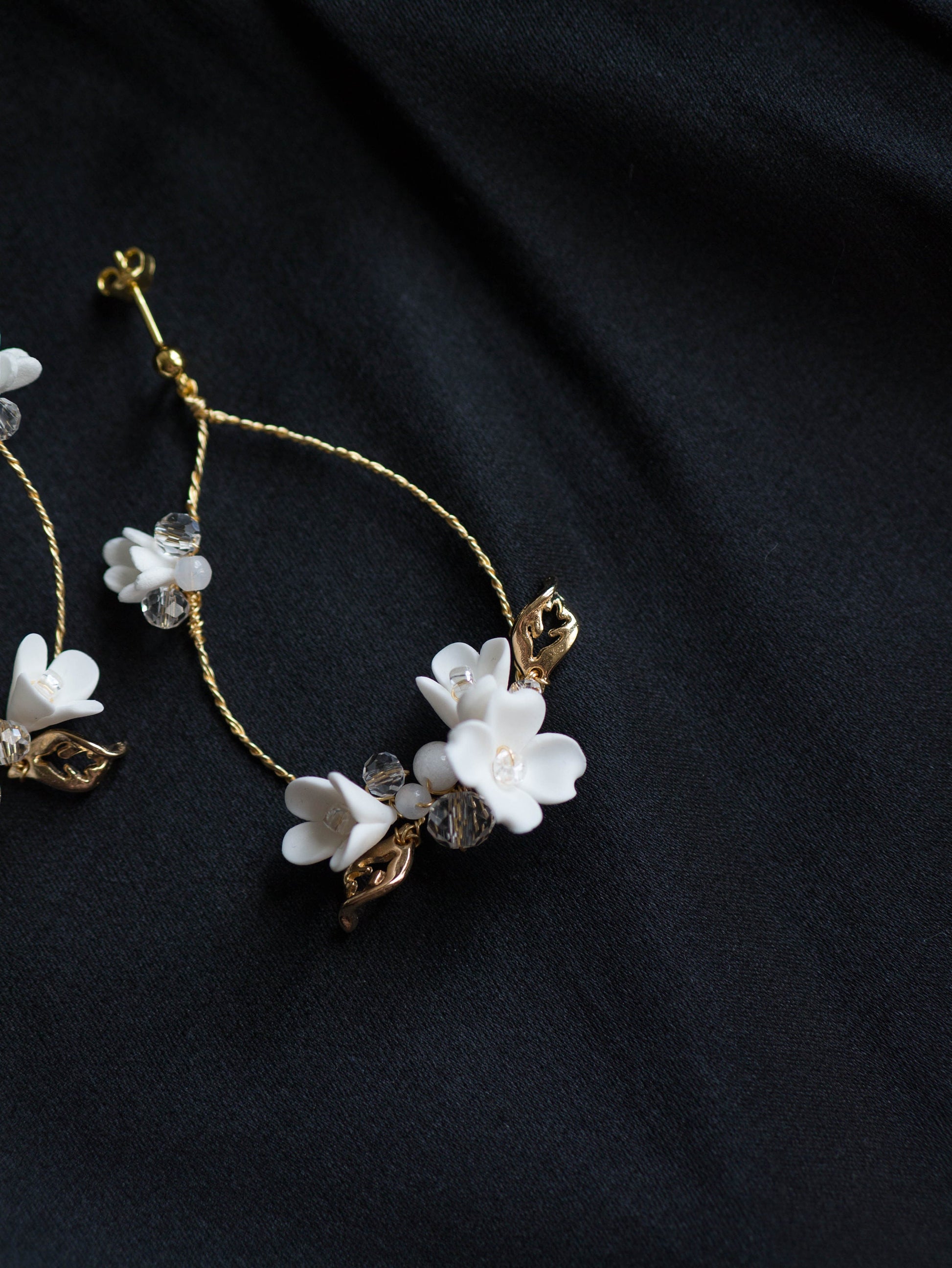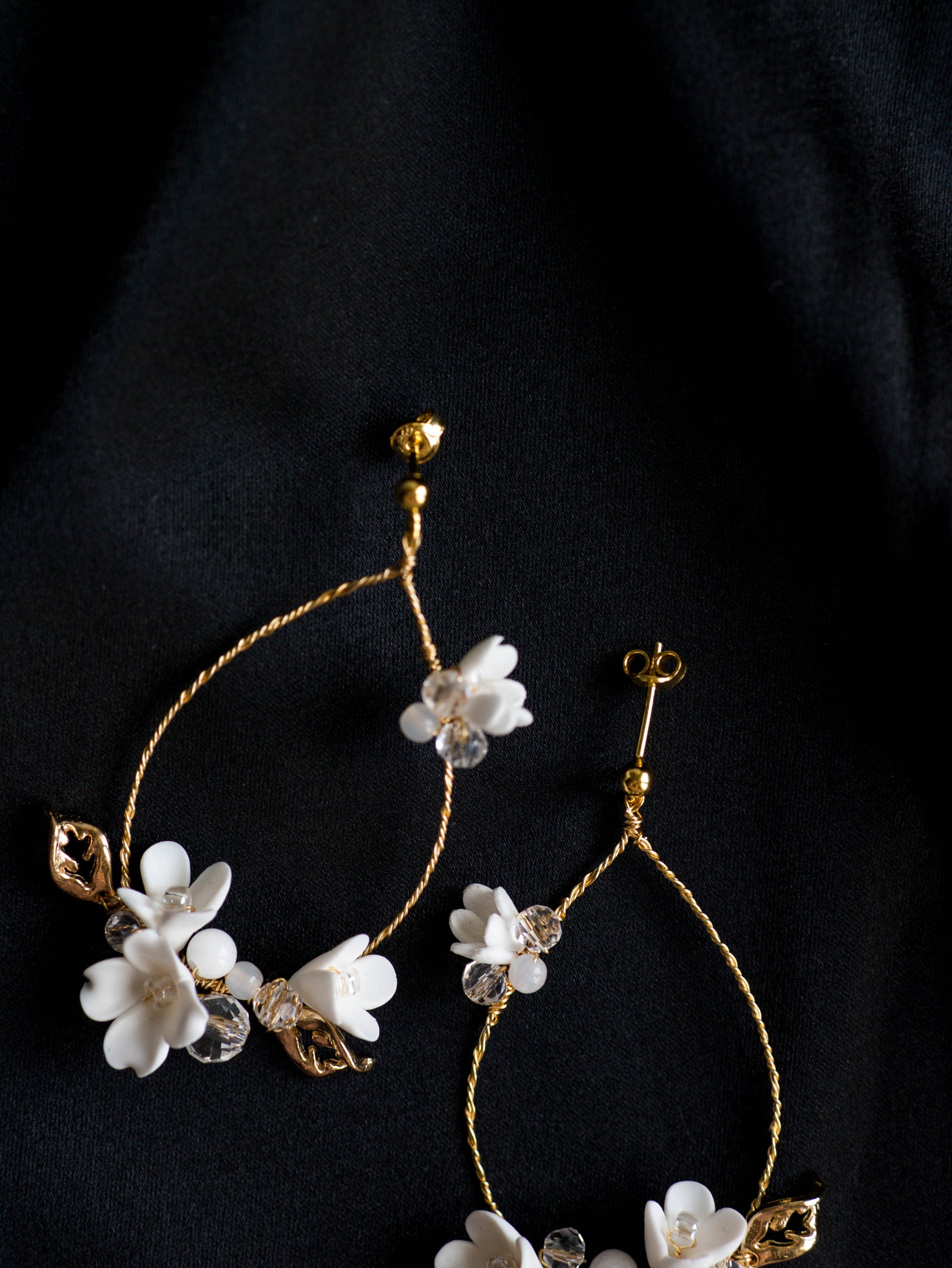 Inspirierend, voller einzigartigem Charme kleiner Blumen, Blätter und Kristalle, bereichern Hochzeitsohrringe viele Stile. Ihre kleine, aber bis ins Detail durchdachte Form passt sowohl zu ätherischen, rustikalen als auch romantischen Brautkleidern.