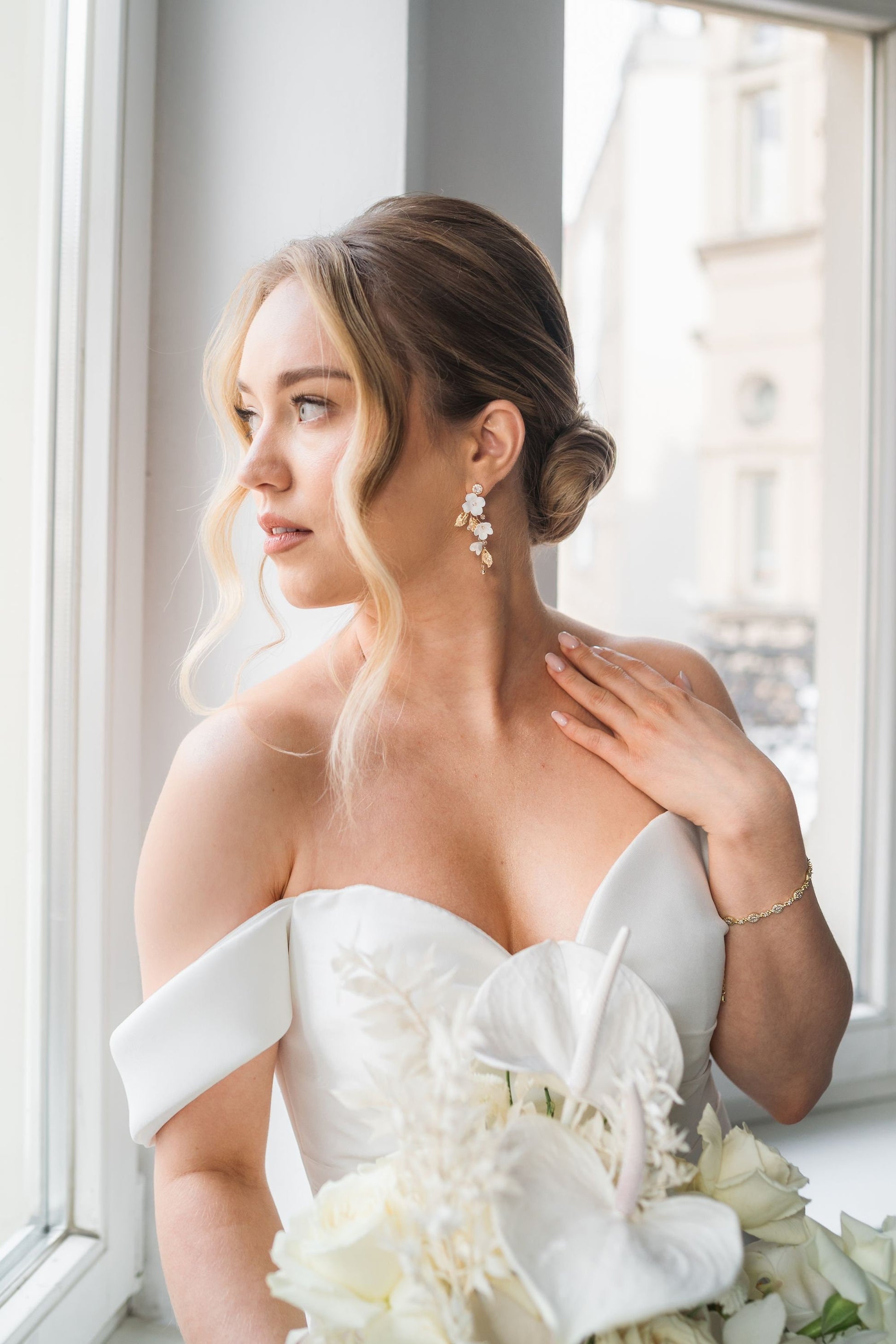 Madlen - Weiße Blumen Hochzeitsohrringe