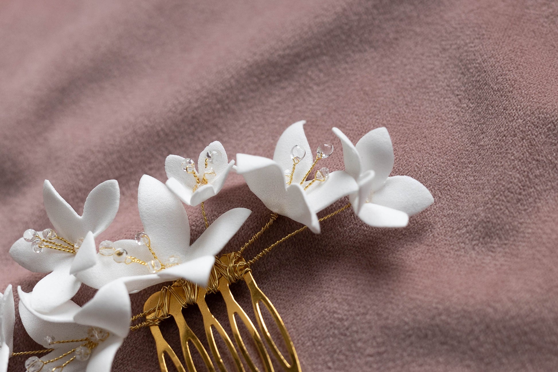 Helen Petite – Hochzeits-Haarkamm mit weißen Blumen